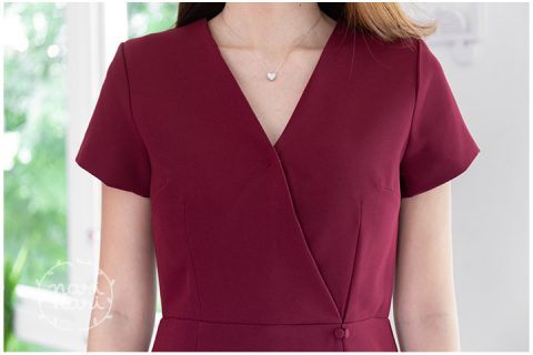 เดรสแขนสั้น ทรงป้ายหลอกด้านหน้า มีกระดุมแป๊กติดกันเปิด ช่วงกระโปรงเป็นทรงสอบเล็กน้อย เล่นดีเทล แต่งกระดุมปั๊มเป็นแนว สวยเรียบร้อย ผ้าเนื้อหนา ซับในทั้งตัว ผ่าซิปซ่อนด้านหลัง ใส่ทำงานได้ดูดีมาก