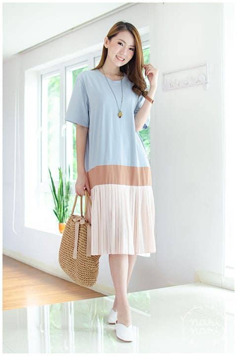 ND151 Triple Block Color Dress – Light Blue