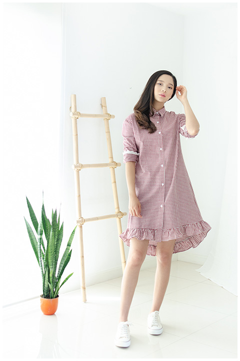 เดรสผ้าคอตตอนลายตาราง ตัวนี้น่ารักมากกก คอปก ผ่ากระดุมหน้า แขนยาว แต่งลูกไม้ขาวปลายแขน ชายเดรสแต่งจีบระบายเบาๆ ด้านหลังยาวกว่าด้านหน้าเล็กน้อย พอจะเกร๋ ใส่ขึ้นมาได้ลุคสาวญี่ปุ่น คาวาอิสุดๆ เลยยย