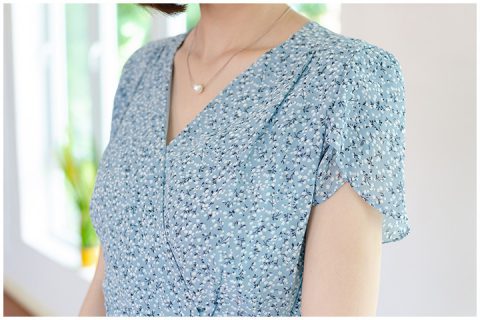 มินิเดรสคอวี แขนสั้นซ้อนกลีบดอกไม้ ทรงป้ายซ้อนกันถึงใต้อก ช่วงกระโปรงเป็นทรงเอ เนื้อผ้าชีฟองพิมพ์ลายดอกไม้ละเอียดๆ ผ่าซิปซ่อนยาวด้านหลัง มีซับในทั้งตัว มาพร้อมสายผูก น่ารัก น่าเอ็นดูมากค่า