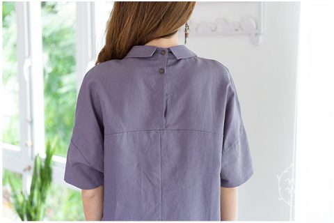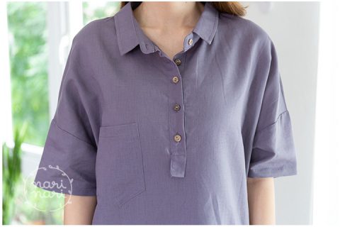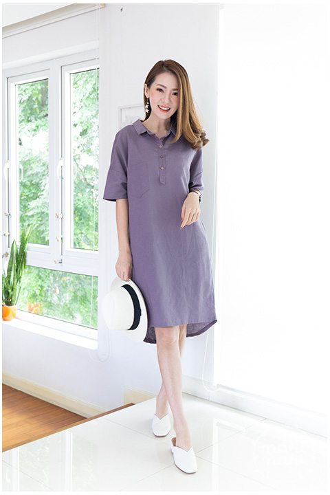 เดรสเชิ้ตผ้าคอตตอน สีม่วงหม่นๆกำลังสวย คอปก แต่งกระเป๋าจริงด้านหน้า ผ่ากระดุมหน้าและหลังสั้นๆ ใช้กระดุมกะลามะพร้าว แขนทรงค้างคาวต่อแขนสั้นทรงไหล่ตกๆ ชายเดรสหลังโค้ง ยาวกว่าชายด้านหน้าเล็กน้อย มีกระเป๋าซ่อนด้านข้างทั้ง 2 ฝั่ง ทรงนี้กำลังมาเลยค่าา แนะนำนะคะ