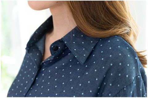 เดรสคอตตอนสีเดนิม พิมพ์ลายจุด เดรสทรงปล่อยๆ คอตตอนนิ่มๆ เนื้อไม่หนามาก แต่ไม่โปร่งแสง มีกระเป๋าซ่อนด้านข้างตะเข็บเดรส แบบไม่ตื้นมาก พอใส่โทรศัพท์มือถือได้ สีแบบเดนิมเข้มแบบนี้เป็นสีอมตะ ใส่ได้ตลอดกาลค่ะ