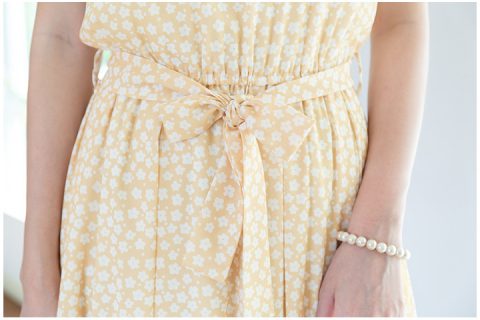เดรสผ้าชีน่าเนื้อดี๊ดีนิ่มเย็นสบายผิว พิมพ์ลายดอกไม้เล็ก คอปาดด้านหน้า ด้านหลังเป็นคอวีแบบไม่ลึก ช่วงเอวเป็นยางยืดเบาๆ มาพร้อมกับสายคาดเอวไว้ผูกเป็นโบว์ กระโปรงจีบทวิส ความยาวกระโปรงไม่สั้นเกินไป มีซับในเต็มตัว รุ่นนี้เป็นแบบสวม