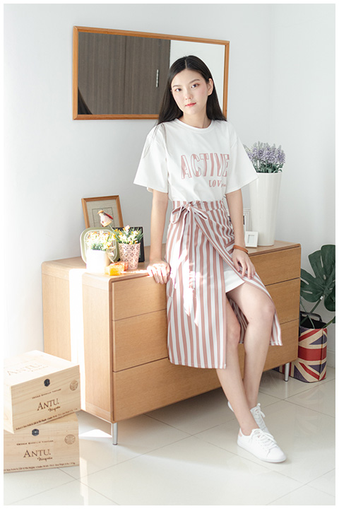 ชุดเซ็ทเดรส ชิ้นในเป็นมินิเดรสคอตตอนตัวยาวทรงหลวมๆ คอกลม สกรีนลาย Active ด้านหน้า ผ้าคอตตอนยืดเนื้อนิ่มเนียนน ใส่แยกได้จับคู่กับอะไรก็สดใส มาพร้อมกับชิ้นกระโปรง ไว้พันรอบเอวเป็นทรงป้ายจริงฟรีไซส์ ช่วงเอวแต่งสายคู่พร้อมห่วงตาไก่ สามารถปรับความกว้างรอบเอวได้ตามการผูก เนื้อผ้าโพลีเอสเตอร์หนา ทอลายริ้วลง ใส่แล้วเพรียวเลย ผ้าไม่บาง แต่งกระเป๋าจริงด้านข้างด้วย น่าร้ากกก