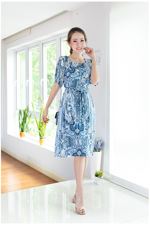 เดรสคอตตอนผสมเนื้อนิ่มมม เย็น ผ้าพิมพ์ลายกราฟิก เนื้อผ้าดีแอบอัดย่นลายเปลือกไม้แบบเบาๆ ผ้าใส่สบายไม่ร้อน ทรงคอเหลี่ยม แขนบอลลูน มีซับในนิ่มๆด้านใน ด้านหลังผ่าซิปซ่อน ทรงกระโปรงทิ้งๆ พร้อมสายคาดเอว ไว้ใส่ไปบีชสวยๆ แต่สีไม่ดุมากใส่ได้ทั้งปีแน่นอนน