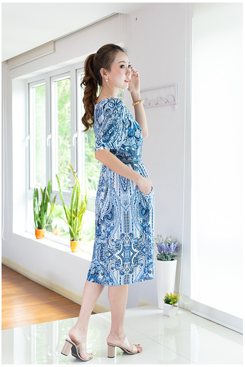 เดรสคอตตอนผสมเนื้อนิ่มมม เย็น ผ้าพิมพ์ลายกราฟิก เนื้อผ้าดีแอบอัดย่นลายเปลือกไม้แบบเบาๆ ผ้าใส่สบายไม่ร้อน ทรงคอเหลี่ยม แขนบอลลูน มีซับในนิ่มๆด้านใน ด้านหลังผ่าซิปซ่อน ทรงกระโปรงทิ้งๆ พร้อมสายคาดเอว ไว้ใส่ไปบีชสวยๆ แต่สีไม่ดุมากใส่ได้ทั้งปีแน่นอนน
