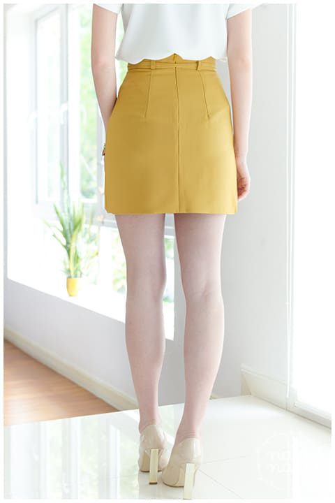 กระโปรงสั้น ทรงเอนิดๆ มีขอบกระโปรงและหูเข็มขัด มาพร้อมกับเส้นเข็มขัดเล็กๆ ไว้ผูกเป็นโบว์ ใช้ผ้ากาแล็กซี่สีสวย ซับในทั้งตัว ผ่าซิปซ่อนด้านหลัง น่ารักค่า ใส่ไปทำงานก็ได้