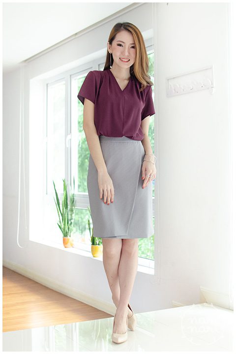 กระโปรงทรงสอบ แต่งป้ายทบหลอกด้านหน้า ผ้าโพลีเอสเตอร์เนื้อดีมาก ทอลายชิโนริเล็กๆ โทนสีน้ำตาลแดงสลับดำ สวยมาก ผ่าซิปซ่อนด้านหลัง ความยาวกำลังเรียบร้อย มีซับในเย็บติดกับตัวกระโปรง งานสวยมากค่ะ ใส่ไปทำงานได้เลย