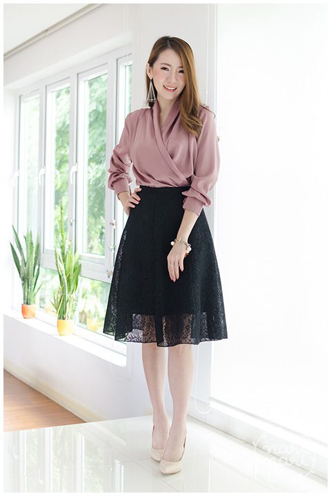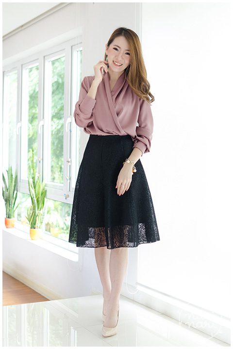 กระโปรงทรงเอ ตัดต่อ 7 ชิ้น ผ้าลูกไม้อยู่ทรง รุ่นนี้ขอบกระโปรงไม่หนา ซ่อนยางยืดไว้ด้านใน ยืดหยุ่นได้โดยไม่เห็นรอยสม็อคย่นเลย เนียนมาก ด้านหลังผ่าซิปซ่อน มีซับในให้ด้วยค่า ความยาวกำลังดี ดูเรียบร้อยสวยงาม ลงตัวมากค่า
