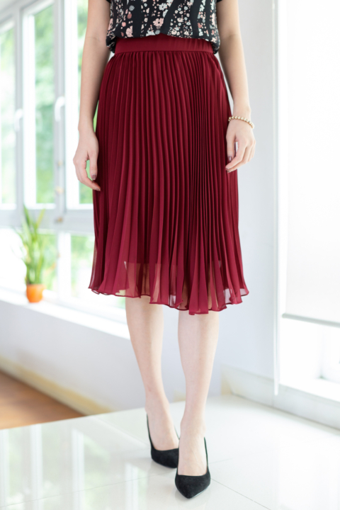 กระโปรงพลีทพลิ้วๆ ความยาวประมาณหัวเข่า-คลุมเข่า ความยาวประมาณนี้ใส่ง่ายมากๆไม่เคอะเขิน ไม่ยาวหรือสั้นเกินไป อัดพลีทถี่ ชายงอนนิดๆ พร้อมซับใน เอวด้านหลังจับสม็อคยางยืด สวมใส่สะดวก ไม่อึดอัด กระโปรงทรงมาตรฐานที่ควรมีติดตู้ เป็นท่าไม้ตายใส่ยังไงก็สวยคลาสสิก สวยได้ทุกโอกาสเลย