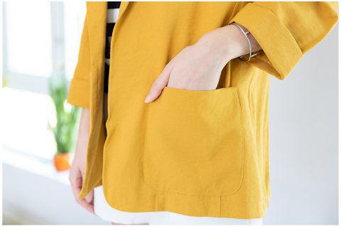 เสื้อคลุม ผ้าโพลีเอสเตอร์ เนื้อไม่หนาไม่บาง ปกยาวๆ ไม่มีกระดุม เสริมไหล่ด้วยฟองน้ำนิดๆ แต่งกระเป๋าใหญ่ ด้านข้าง ปลายแขนพับและเย็บฟิกซ์ ใส่แมตช์กับอะไรก็ได้ ใส่คลุม กันแดด อัพลุคให้ดูอินเทรนด์ ได้หมดเลยค่า