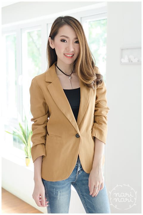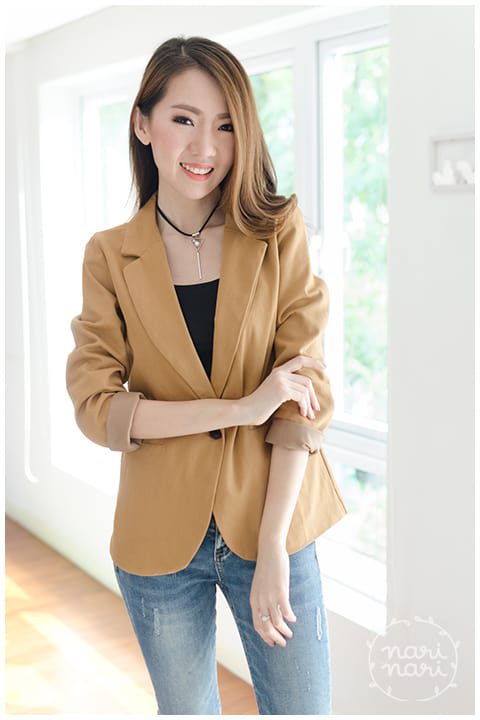 Size : รอบอก 36”-37”, ไหล่ 15”, แขนยาว 22”, รอบวงแขน 18”, รอบปลายแขน 10”, รอบเอว 33”, ยาว 25”, รอบชายเสื้อ 42” (ซับในเต็มตัว)