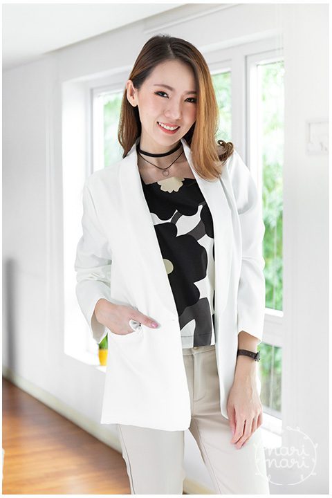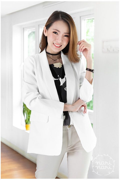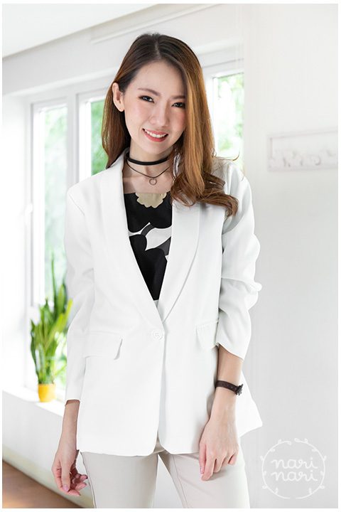 Blazer ใส่ทำงานสวยๆ ปกโค้ง ติดกระดุม 1 เม็ด มีกระเป๋าจริง 2 ข้าง ตัดเย็บด้วยผ้าเนื้อดี ซับในเต็มตัว มีไว้ได้ใช้แน่นอน