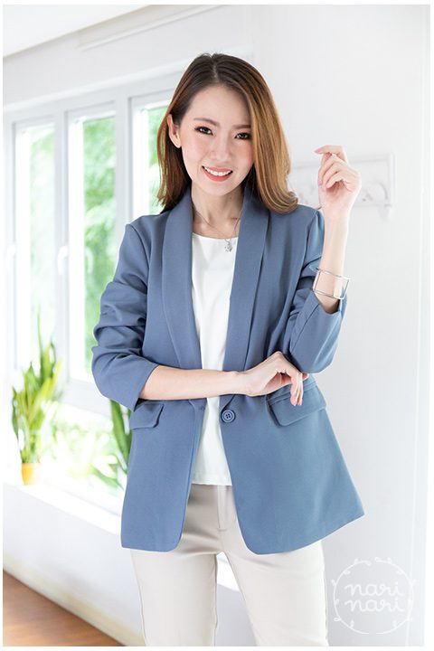 Blazer ใส่ทำงานสวยๆ ปกโค้ง ติดกระดุม 1 เม็ด มีกระเป๋าจริง 2 ข้าง ตัดเย็บด้วยผ้าเนื้อดี ซับในเต็มตัว มีไว้ได้ใช้แน่นอน