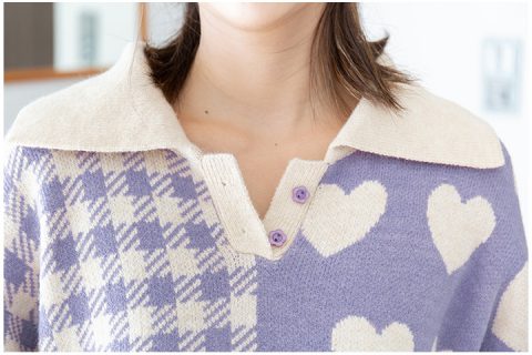 เสื้อไหมพรมเนื้อนุ่มสะใจ ทรงคอปกสีครีมหวานๆ ตัวเสื้อเล่นลายตารางกับหัวใจอย่างละครึ่ง ทอเป็นเนื้อเดียวกันนะคะไม่ใช่งานตัดต่อ เนื้อนุ่มนิ่มไม่บาง อุ่นด้วยย