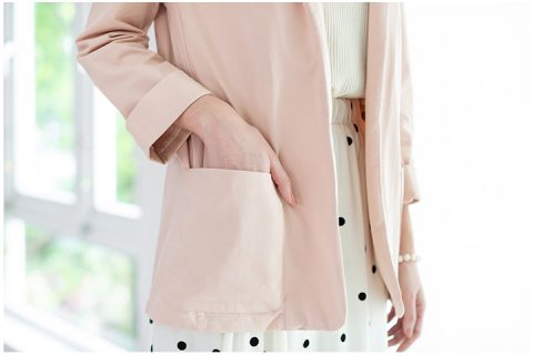 เสื้อคลุม ผ้าคอตตอนยืดเนื้อนิ่ม ปกยาวๆ ไม่มีกระดุม เสริมไหล่ด้วยฟองน้ำนิดๆ แต่งกระเป๋าใหญ่ด้านข้าง ปลายแขนพับและเย็บฟิกซ์ ใส่ปุ๊บ ได้ลุคดีงามปั๊บ