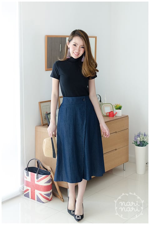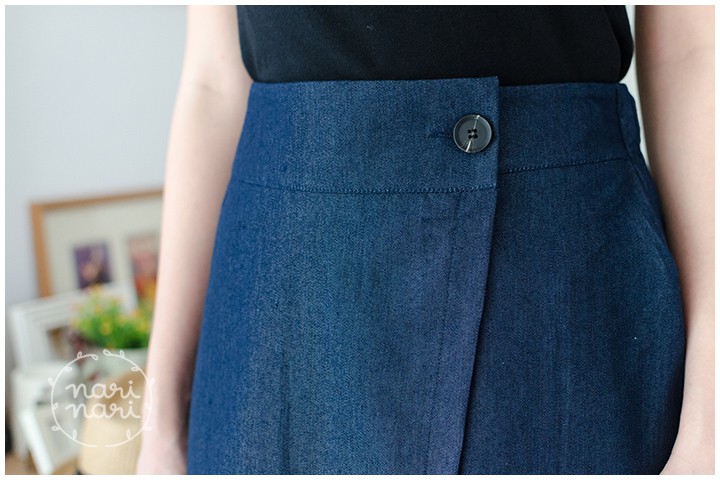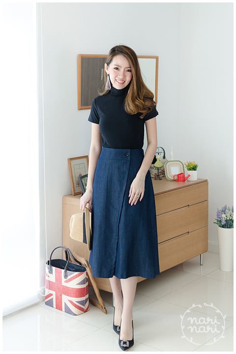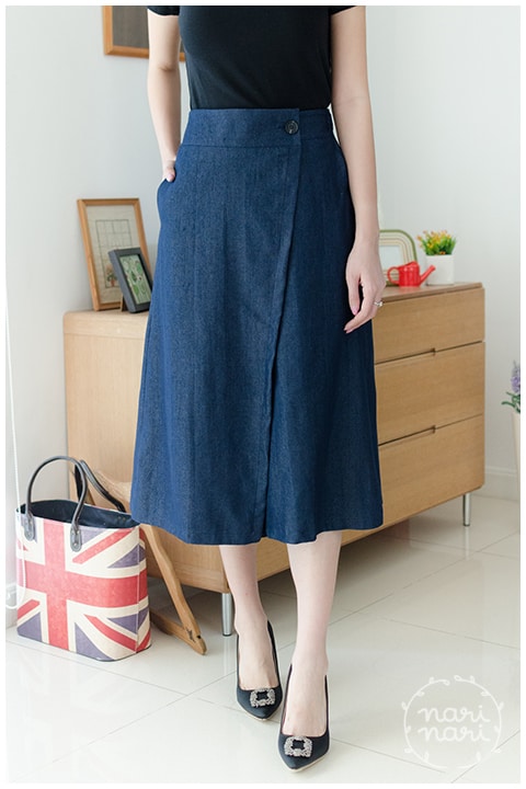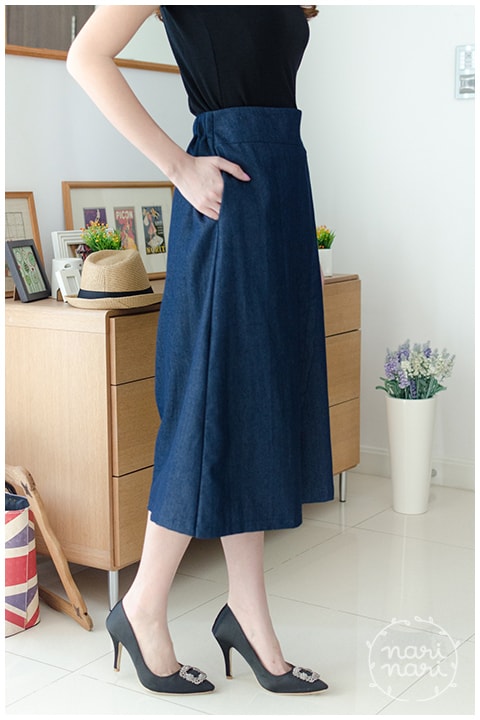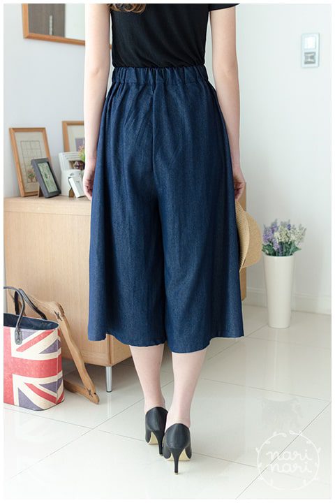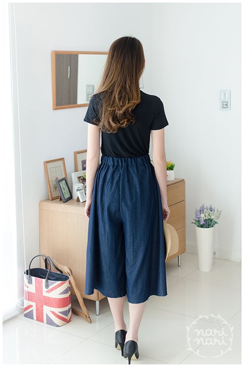 กางเกงป้าย ทรงสวยมาก เป็นทรงห้าส่วนขาบาน ด้านหน้าแต่งป้ายหลอก ติดกระดุมที่เอว 1 เม็ด ดูเหมือนกระโปรง มีกระเป๋าซ่อนด้านข้าง ผ้าคอตตอนยีนส์ ใส่สวยมากเลย