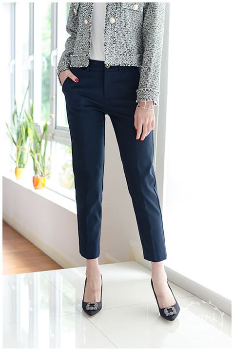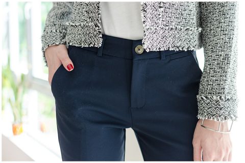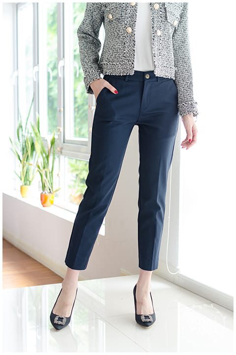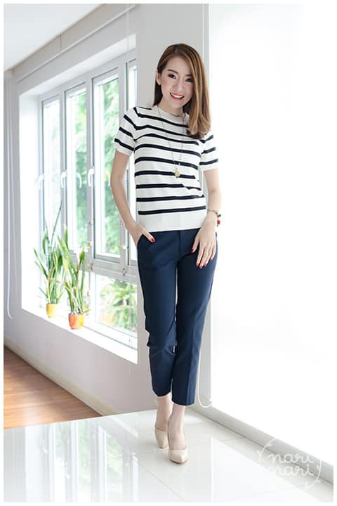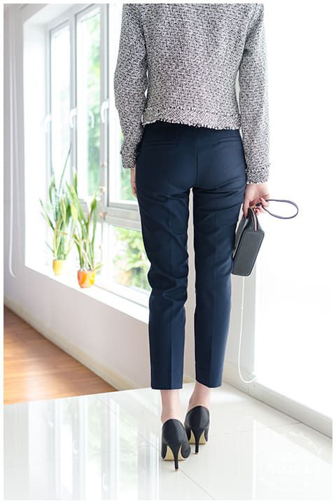 กางเกงขายาว 9 ส่วน ผ้าเนื้อดีสุดๆ เนื้อหนา ผ้า Polyester ผสม Viscose Elastanne ยืดนิดๆ ด้านหน้ามีกระเป๋าจริง ด้านหลังแต่งกระเป๋าหลอก เอวกลางๆ ใส่ขึ้นมาจะอยู่ประมาณใต้สะดือนิดหน่อย ใส่สบายมาก ทรงสวยค่า