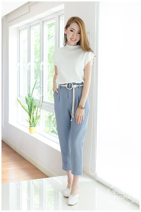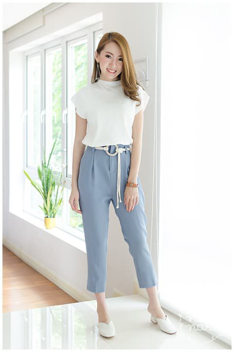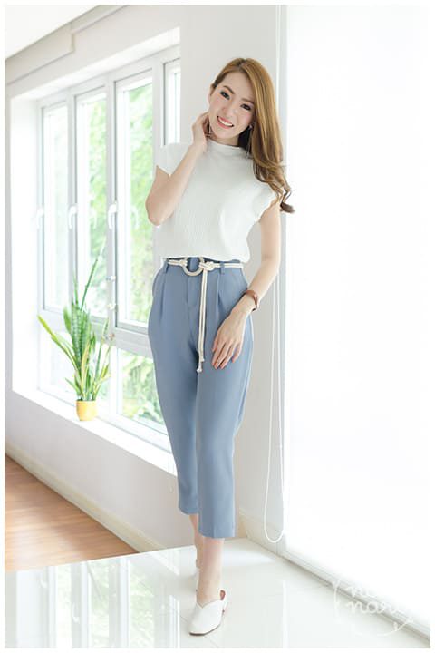 กางเกงเอวสูง ทรง 8 ส่วน ผ้าโพลีเอสเตอร์เนื้อดีมาก ไม่บาง เนื้อยืดหยุ่นนิดๆ นิ่มใส่สบายมาก จับจีบสวย มีกระเป๋าจริง มาพร้อมสายเข็มขัดเชือกเกลียว หัวห่วงกลม ใส่คู่กัน เก๋มาก ทรงสวยค่า