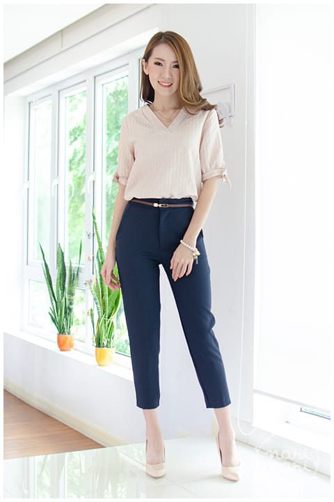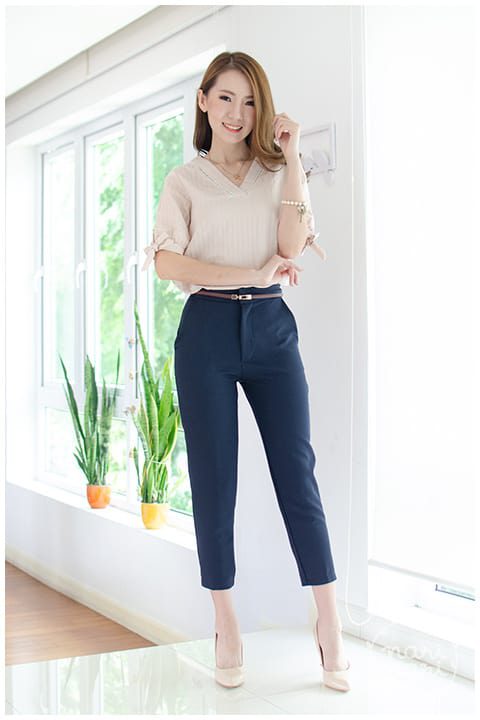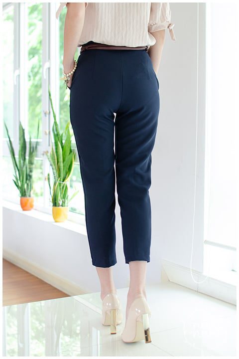 NP042 High-Rise Crop Cigarrette Pants – Navy Blue