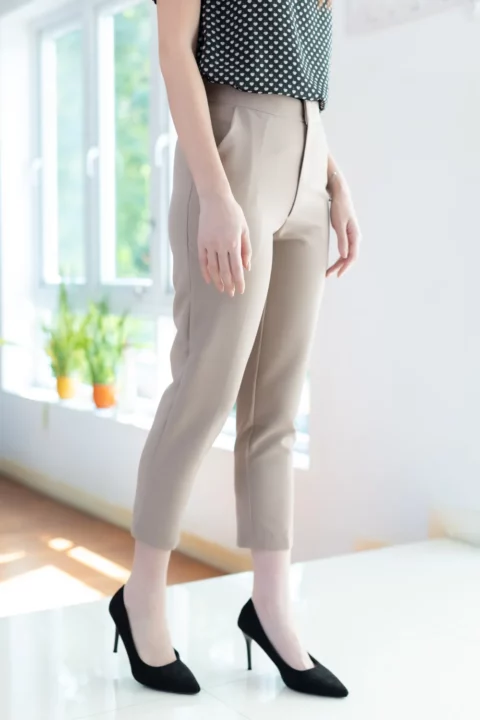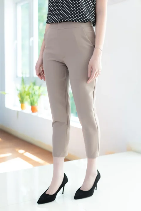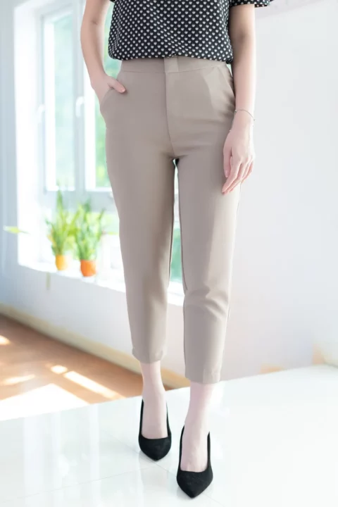 กางเกงเอวสูงปานกลาง ขอบเอวอยู่เหนือสะดือประมาณ 1 นิ้ว ทรง 8 ส่วน ผ้าไปเป้ เนื้อยืดหยุ่น นิ่ม ใส่สบายมาก มีกระเป๋าจริง ใส่ง่าย ทรงสวยค่า