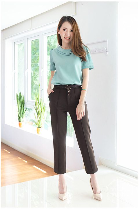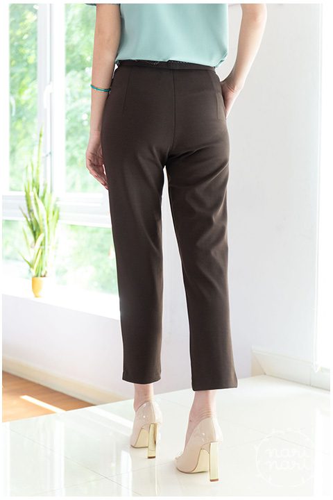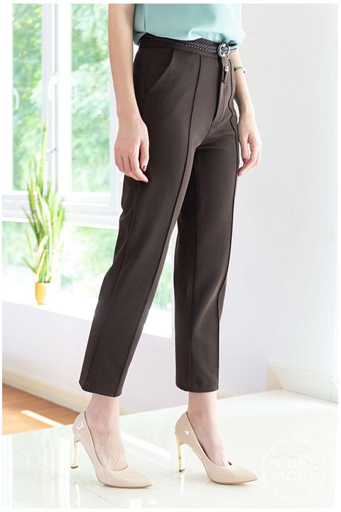 กางเกงเอวสูงปานกลาง ขอบเอวอยู่เหนือสะดือประมาณ 1 นิ้ว ทรงครอป 8 ส่วน ขากระบอก ตีเกล็ดเล็กๆ ตรงกลาง ตัดเย็บด้วยผ้า Super Nano เนื้อดีมากกกก เนื้อแบบทอแน่นๆ ยืดหยุ่นนิดๆ ผ้าหนา นิ่ม ใส่สบายมาก มีกระเป๋าจริง ใส่ง่าย ทรงสวยค่า