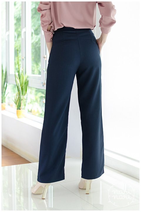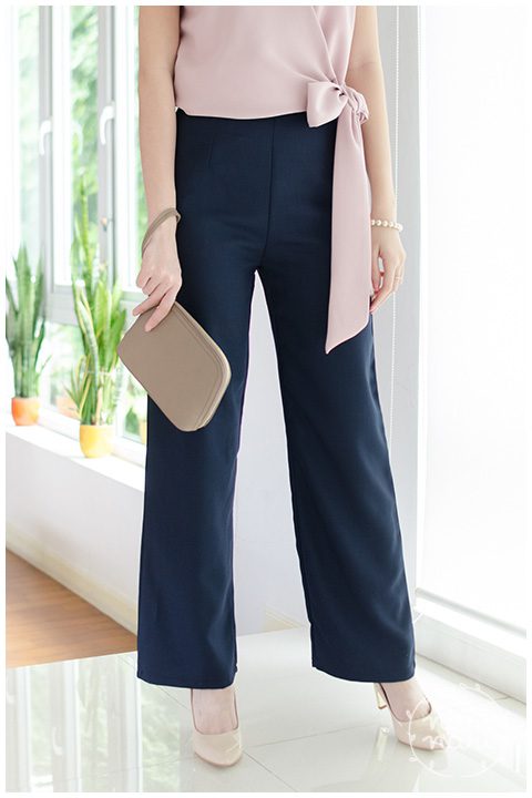 กางเกงเอวสูงขายาว ตัดเย็บด้วยผ้ากาแล็กซี่ เนื้อดี ขอบเอวบากเป็นรอยหยักด้านหน้าเล็กๆ ขาบานทรงกระบอก ผ่าซิปซ่อนด้านข้าง มีกระเป๋าซ่อนด้านข้างข้างขวา ทรงสวยมาก ทำให้ดูผอมสูง ดูเพรียวเลยค่า
