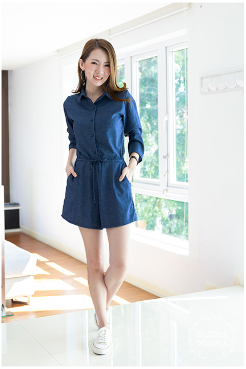 Playsuit แขนยาว คอตตอนผสมเนื้อนิ่ม ลุคชิลๆ ผ่ากระดุมยาวด้านหน้า ทรงสบายๆ มีสายรูดช่วงเอว ปรับขนาดได้ตามชอบ ท่อนล่างเป็นขาสั้นมีกระเป๋าด้านข้าง น่ารัก ใส่ได้เรื่อยๆ ค่ะ