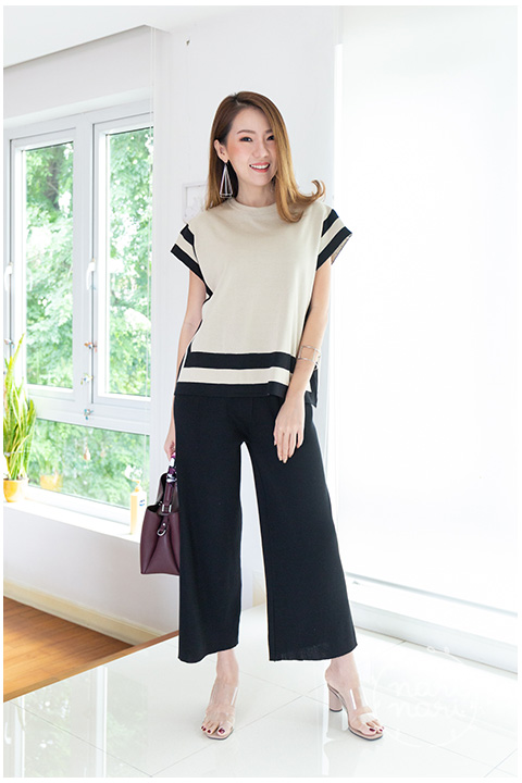 ชุดเซ็ทไหมพรมเนื้อดี ทรงสวยสะดุดตา ตัวเสื้อคอกลม แขนล้ำ เนื้อหนากำลังดี เล่นลายเส้นคู่ ยาวตามกรอบบนสีพื้นสวย กางเกงสีดำเอวยางยืด ใส่ขึ้นมาเอวสูงประมาณสะดือ ทรงดีงาม เนื้อไหมพรมยืดได้ใส่สบายม๊ากกก