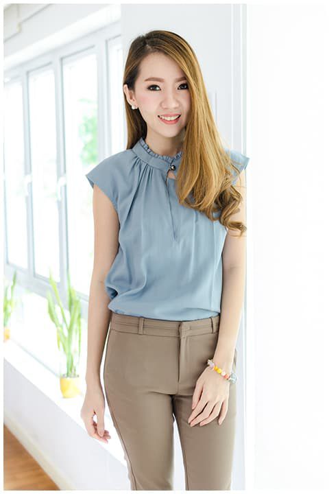 เสื้อแขนล้ำๆ ผ้าสปันเนื้อนิ่มมากๆ คอปิดจีบระบายตั้งๆ ผ่าคอด้านหน้าสั้นๆ ติดกระดุม จับจีบรอบคอ แนะนำสีใหม่ สีชมพูนม สวยนุ่มๆ ใสๆ ค่า