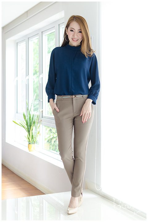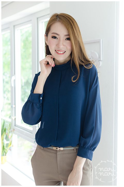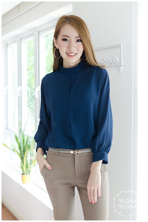 NT1154 Roll Collar Bracket Blouse – Navy Blue