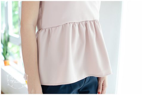 เสื้อแขนสั้นทรงไขว้ซ้อนกันด้านหน้า ซ้อนลึก ไม่เปิด ช่วงเอวต่อจีบรูด ระบายๆ ดูสบายๆ ผ้าโพลีเอสเตอร์ผสม เนื้อดี ยืดหยุ่นได้นิดๆ ใส่สบาย แมตช์กับอะไรก็คูล