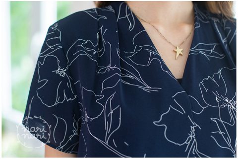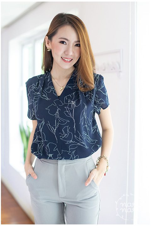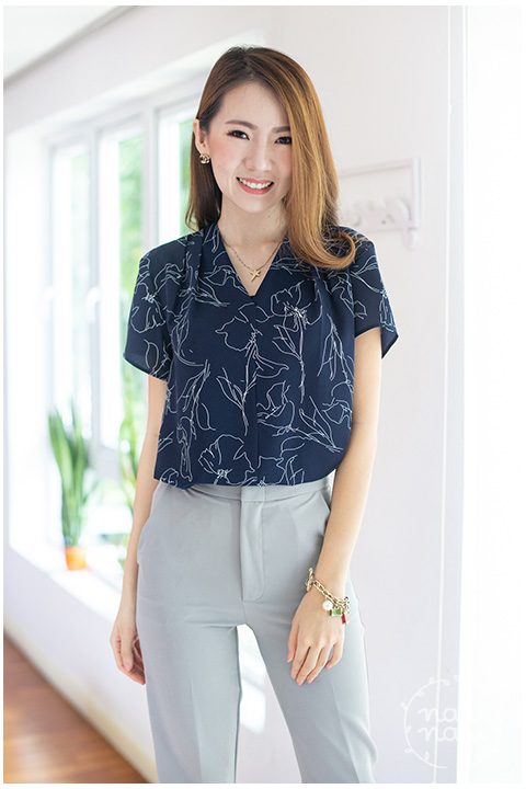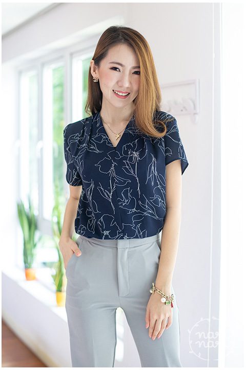NT131 V-Collar Drawing Blouse – Navy Blue