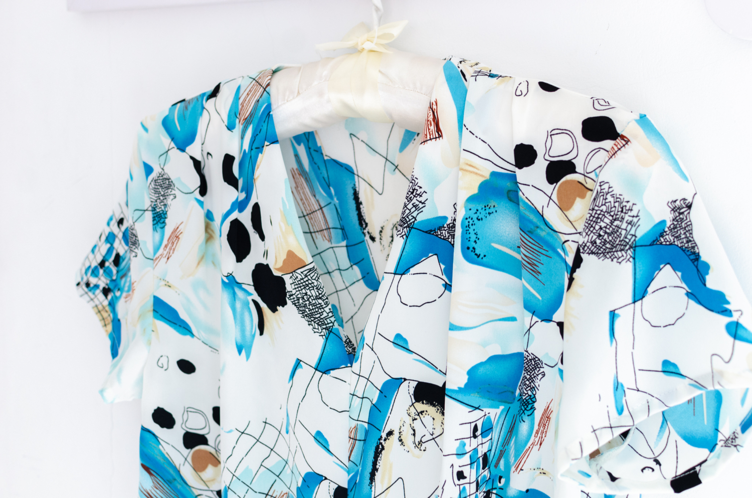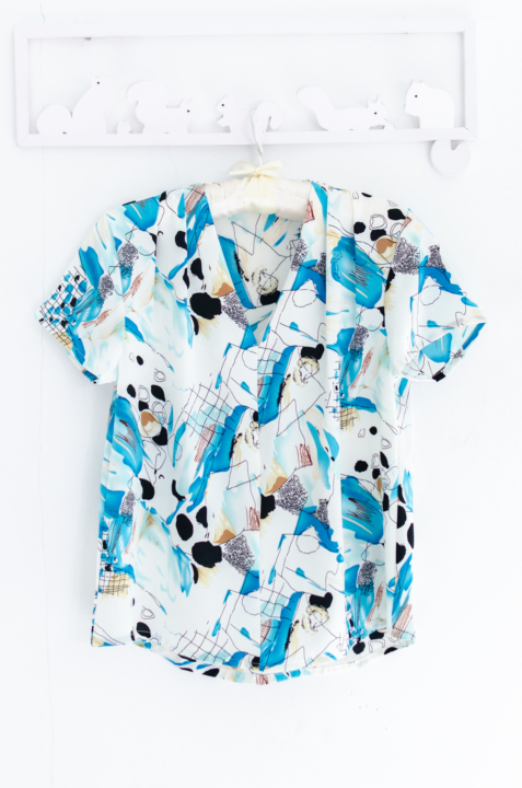 เสื้อคอวี โดดเด่นด้วยลายพิมพ์กราฟิกทั่วตัว ดีไซน์สวยเป็นคอวีป้ายซ้อนกันนิดๆ ด้านหน้า ไหล่จับจีบเบาๆ แขนทรงสั้น ใช้ผ้าเนื้อดี ดูเรียบร้อย สวยเก๋แบบมีคลาสค่า