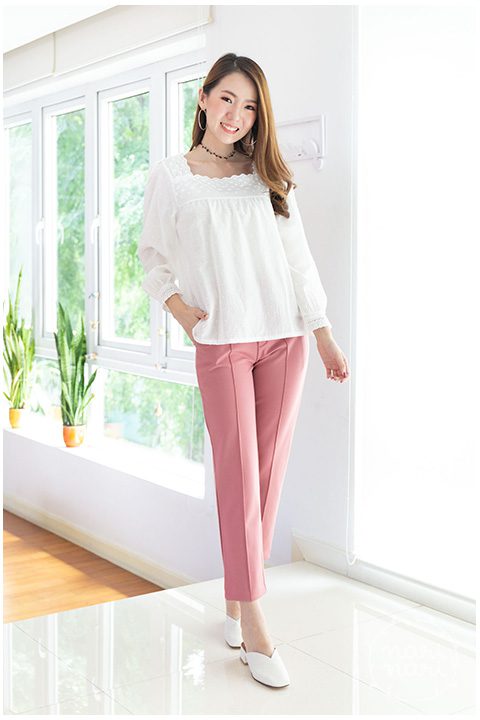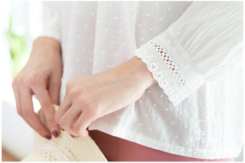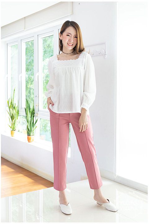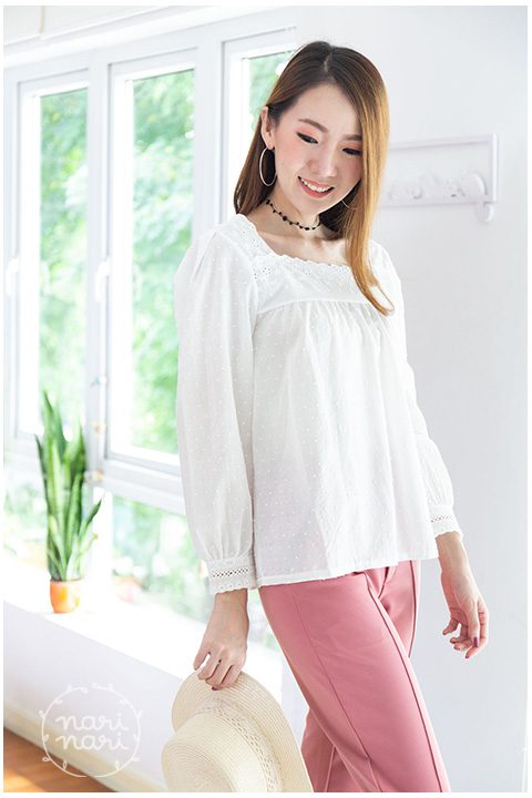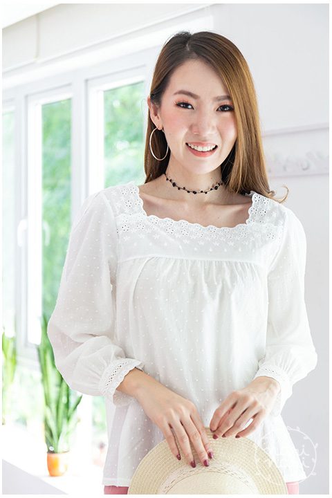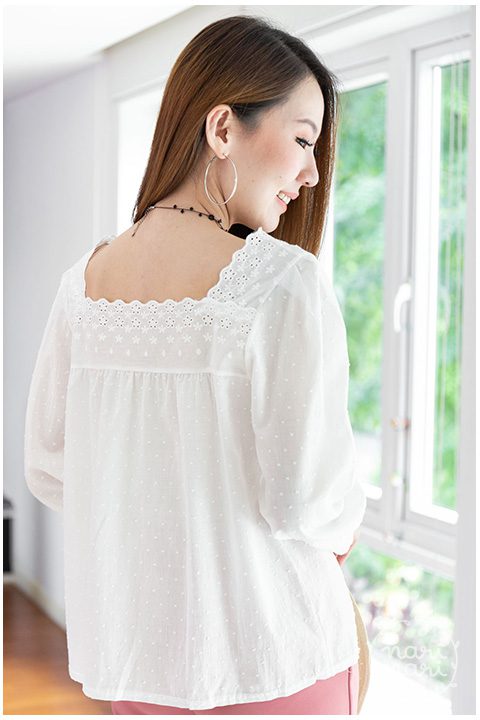 NT1436 Square Collar Perforated Cotton Blouse – White