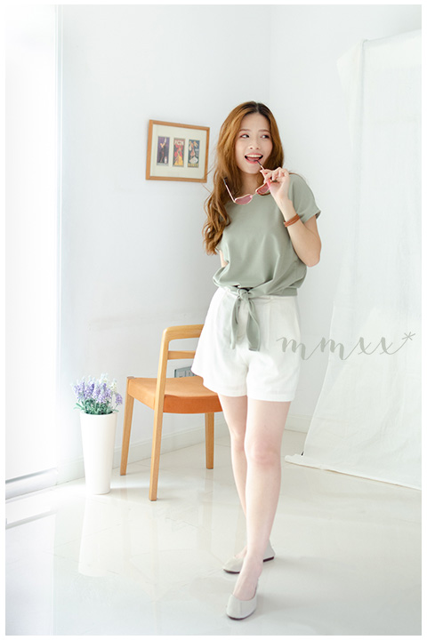 เสื้อผูกเอว ผ้ายืดเนื้อดี สัมผัสนุ่มละมุน แขนล้ำๆ ความยาวไม่สั้นมาก ใส่แบบผูกปมด้านหน้า น่ารัก สดใส เลยค่า แมตช์ง่าย สีสวยทุกสีเลยยย…