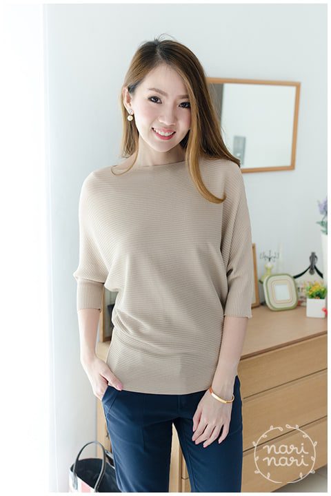 เสื้อไหมพรมทอเนื้อร่อง เนื้อไม่หนามาก ทรงไม่ยาวกำลังดี ผ้ายืดหยุ่น เนื้อเย็นนิดๆใส่สบายมาก ทรงคลาสสิก คอปาด แขนทรงค้างคาว ใส่ accessories เพิ่มเบาๆ ก็สวยแล้ว แนะนำให้มีติดตู้ไว้ ใส่ได้เรื่อยๆค่า