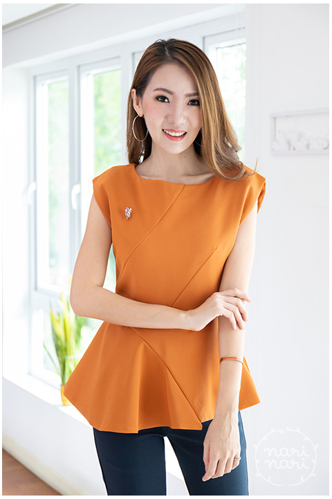 เสื้อแขนล้ำ คอกลม ต่อชายระบายจังหวะสวย ใส่แล้วดูมีเอว แต่งตะเข็บเฉียงด้านบนและช่วงระบาย ทรงสวย ผ่าซิปซ่อนข้างซ้าย มีผ้าซับในเย็บติดกับตัวเสื้อทั้งตัว ผ้าดี งานคุณภาพ ใส่สวยจี๊ดค่า