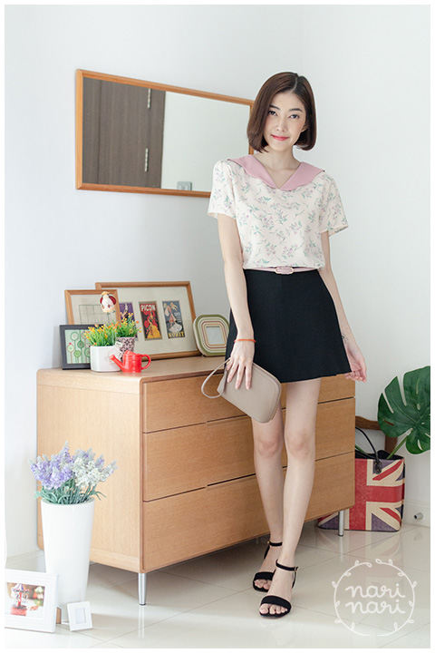 เสื้อคอวีแต่งปกขอบหยักโค้งๆ น่ารักอ่อนหวาน ขอบปกสีพื้น ตัวเสื้อพิมพ์ลายดอกไม้ ด้านหลังผ่าหยดน้ำติดกระดุมคอ เนื้อผ้าดี๊ดี นิ่มลื่น ใส่สบายไม่ร้อน รีดง่ายมากด้วย