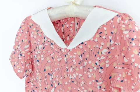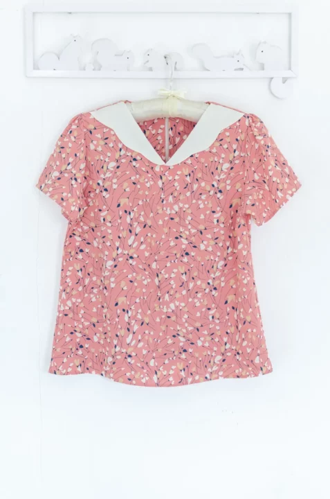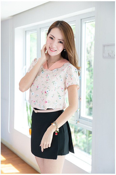 เสื้อคอวีแต่งปกขอบหยักโค้งๆ น่ารักอ่อนหวาน ขอบปกสีพื้น ตัวเสื้อพิมพ์ลายดอกไม้ ด้านหลังผ่าหยดน้ำติดกระดุมคอ เนื้อผ้าดี๊ดี นิ่มลื่น ใส่สบายไม่ร้อน รีดง่ายมากด้วย
