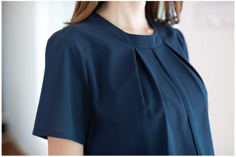 เสื้อแขนสั้นคอกลม จับจีบช่วงคอเบาๆ เนื้อผ้าโพลีเอสเตอร์ผสม ลงตัวมากๆเลยค่าา ด้านหลังผ่าซิปซ่อน ใส่ไปทำงานได้ สวยเรียบร้อย ดูดี ใส่ได้ไม่เบื่อเลย