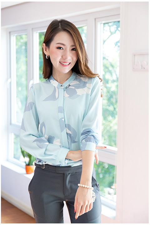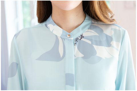 เสื้อแขนยาวผ้าชีน่าเนื้อดีมากๆ นิ่ม เย็น ทิ้งตัวมีน้ำหนัก ใส่แล้วไม่พองค่า พิมพ์ลายดอกไม้ ดูนวลๆ คอจีน ผ่ากระดุมหน้า แต่งสาบปิดกระดุม รีดง่าย ดูแลง่าย ใส่สบายมากด้วยค่ะ ไม่ผิดหวังค่า