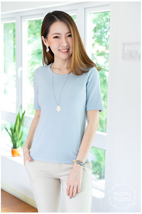 เสื้อไหมพรมเนื้อนิ่มมมม คอกลม แขนสั้น สีน่ารัก แบบคลาสสิก แมทช์ง่าย ใส่ได้ตลอดค่า