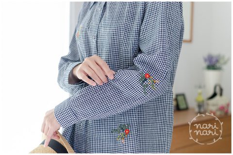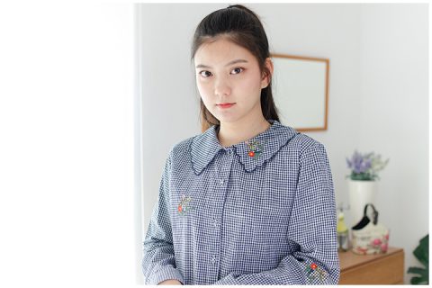 รุ่นนี้น่าร้ากก เสื้อคอตตอนนิ่มๆลายตาราง แขนยาว ผ่ากระดุมหน้า คอปกหยักกุ๊กกิ๊ก ตัวเสื้อด้านหน้าปักลายดอกไม้เล็กๆ ถูกใจมาก