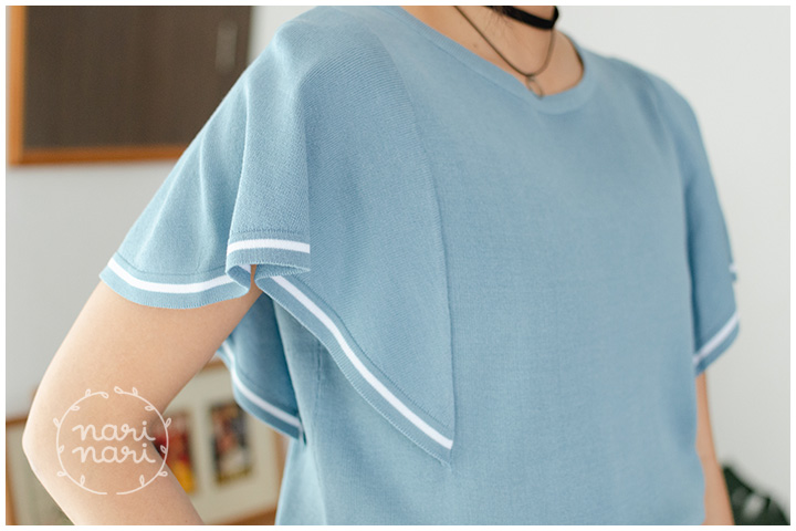 เสื้อไหมพรมทรงสบาย คอกลม แขนกุดแต่งระบายคลุมต้นแขน เล่นลายทางยาวเป็นแถบตรงขอบแขน ตัวเสื้อไม่ยาวใส่ปล่อยได้เลย เนื้อไหมพรมทอนิ่ม ใส่สบายค่า