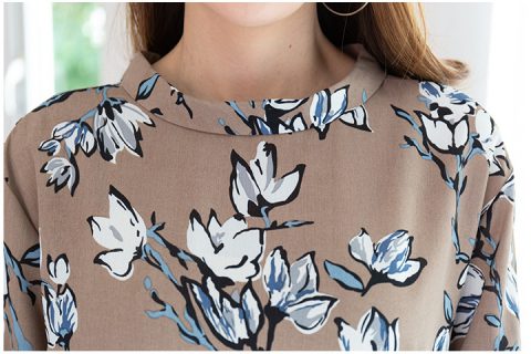 เสื้อสวยทรงคอม้วน ทรงปล่อยหลวมๆ ไหล่ตกหน่อยๆ ผ้าเนื้อดีใส่สบาย พิมพ์ลายกราฟิกดอกไม้ แขนสี่ส่วนใส่แล้วได้ความยาวกำลังดี ด้านหลังผ่าซิปอย่างดีช่วยให้ใส่ง่าย ใช้อะไหล่สีทองเข้ากันกับเสื้อ สวยงาม สวยคลาสสิคค่า
