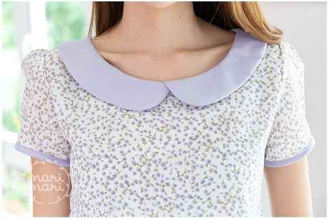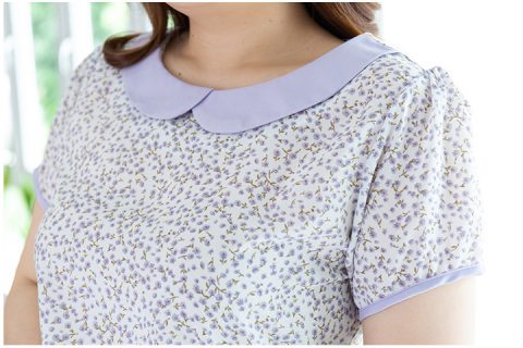 เสื้อลายดอกไม้จิ๋ว ตัวเสื้อใช้ผ้าไหมสปันเนื้อเงานิดๆ แต่งปกบัวซ้อนกันเนื้อจอร์เจีย แขนสั้นกุ๊นขอบแขน เป็นแบบสวมคอ ผ้านิ่มรีดง๊ายง่าย ใส่สวยน่ารักๆ กำลังหวานเลย
