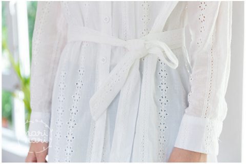 เสื้อเชิ้ตผ่ากระดุมหน้า ไหล่ตกๆ แขนยาว ชายหลังยาวกว่าด้านหน้าเล็กน้อย ทรงเบสิคแต่สวยไม่ธรรมดา เพราะตัดเย็บด้วยผ้าคอตตอนฉลุลายดอกไม้ทั้งตัว มาพร้อมกับสายคาดเอวเนื้อเดียวกัน งานฉลุก็จะหวานๆหน่อย หรือปรับแมทช์กับยีนส์สั้นเป็นชุดเที่ยวทะเลก็ปังที่สุดไปเลย