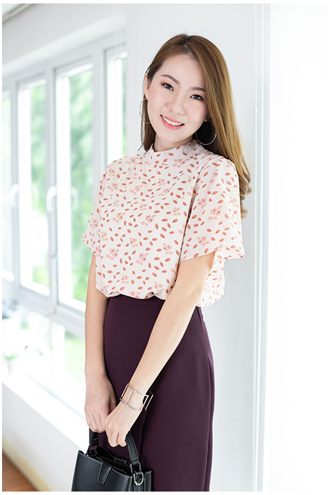 เสื้อคอปิดทรงคุ้นเคยใส่ง่ายแมทช์ง่าย ผ้าใหม่ลายพิมพ์ใบไม้แดงค่อยๆร่วง เป็น Autumn ในมู้ดอ่อนหวานๆ เนื้อโพลีเอสเตอร์ ลื่นๆเนียนๆ แอบเด้งนิดๆ เพิ่มซับในไว้ให้เพื่อความสะดวกในการแต่งตัวไม่ต้องใส่หลายชั้นก็เรียบร้อยเลย ด้านหลังผ่าหยดน้ำติดกระดุมคอ สวยงามมากมาย