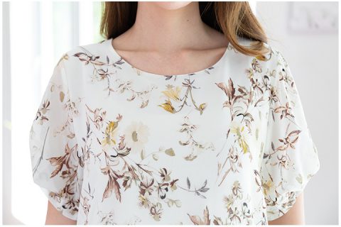 เสื้อชีฟองเนื้อนิ่มๆ พิมพ์ลายดอกไม้หวานๆ คอกลม รุ่นนี้เป็นแบบสวมนะคะ ช่วงแขนแต่งจีบซ้อนทบเพิ่มวอลลุ่ม พองกำลังสวย มีซับในเต็มตัว สวยหวานค่ะ